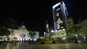 La noche se cerró con una velada cultural en la plaza Murillo, que fue abarrotada por centenares de personas que portaban la tricolor nacional y wiphalas.