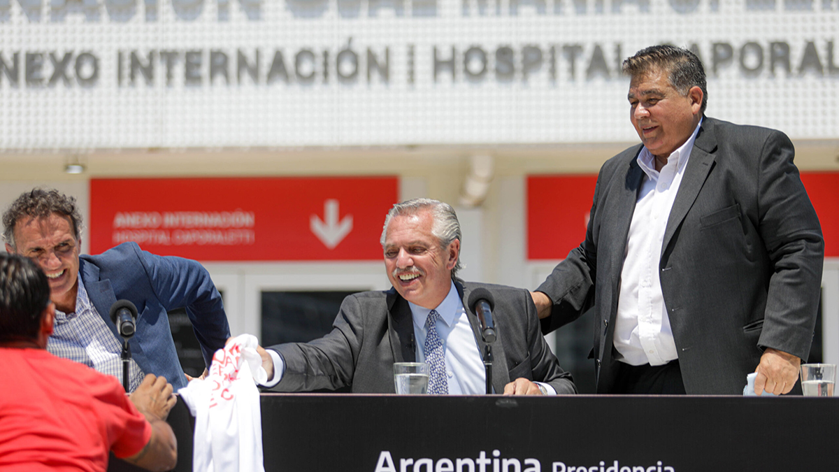 El presidente Alberto Fernández encabezo el acto de reinauguración del hospital y la finalización de las primeras 2.838 obras públicas realizadas por el Gobierno Nacional .