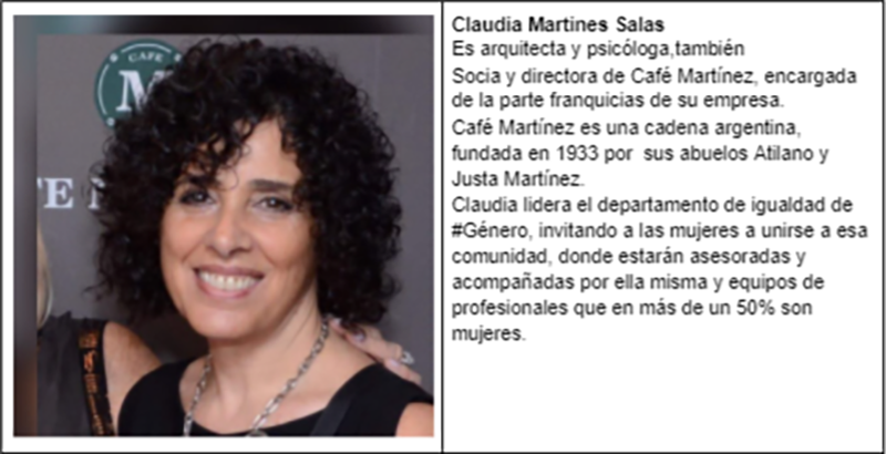 En números; El 60% del personal de Café Martinez son mujeres y el 80% de clientes son mujeres. Pero solo el 20% son empresarias a cargo de alguna franquicia.
