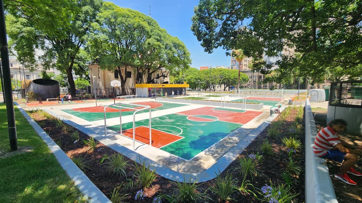 La plaza como escenario: donde el arte urbano, el deporte y la vida cotidiana se encuentran para construir identidad colectiva.